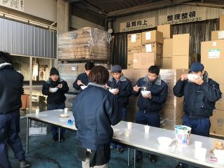おもちとお神酒でほどよくあったまった後は、従業員さん全員新年のあいさつを致します。