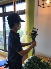 異色の経歴の持ち主で、面接の時に「お花ができます」と聞いていましたので