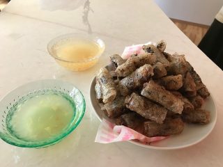 山盛りのチャーゾです!ヌックマム(ナンプラー)のソースをたっぷりとつけていただきます。