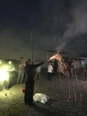 ベトナムでは花火は高級品で、お正月しかやらないようで、最初は戸惑い気味のご両親。
