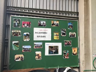 もともと工場内にあった使っていない掲示板を張り替えて、社内行事の写真を貼ってくれました。
