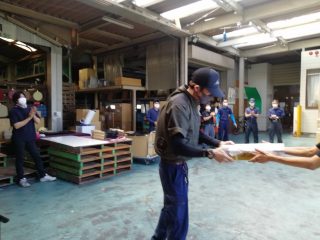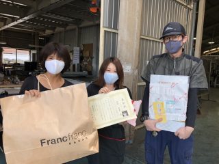親子で働いてくれておりますので、息子さんからお祝いの品を渡してもらいました。