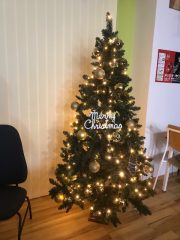 新事務所に移転するときから夢でした。自宅には飾れない大きなツリー。