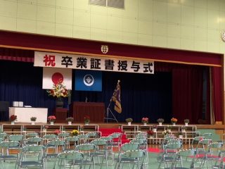 前もってもらった式次第は、祝辞、卒業記念合唱等の歌関係はことごとく割愛で、