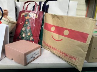 ヴィトンや大丸、高島屋にGODIVA、4°c・・・と有名ショップの袋が並んでおります。