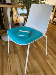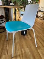 スタッキングチェア「KATSUKO」も色が変われば別人ですね。