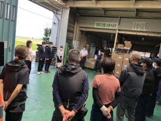 研修センターからの移動日に、新人ベトナム人の恒例のあいさつの儀を行います。