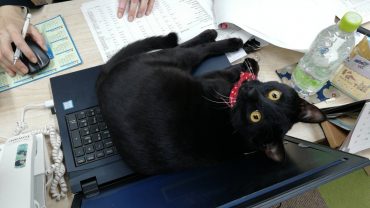 ここぞというタイミングでやってきて、パソコンにドカッ。