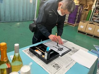 早朝のイツメンがそろい、お習字が終われば、恒例のお年賀お神酒タイム!