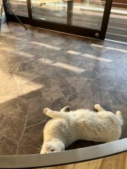 ケガ療養中は、皆から甘やかされ美味しいもの食べ放題だったので、より一層大食い猫に。