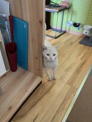 ショコラ部長出社前の朝の時間。事務所内にズカズカと入ってきちゃうだいふく氏。
