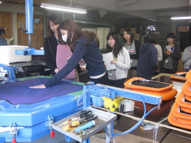 4つのグループにわかれ、張り場、製造工場、塗装ライン、組み立て工場を見ていただきました。