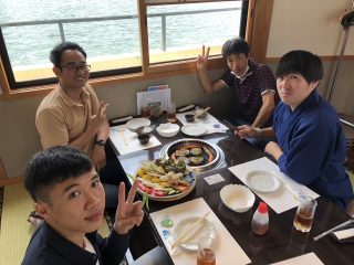 その後は、鳥羽港へ移動し、屋形船ランチーー。