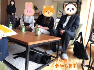 (大事な打ち合わせには、陰ながら参加する所存のショコラ部長)