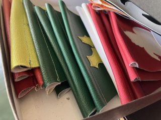 イスの座面に使用するレザーの端材でいろいろと作ってくれていました。