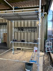 半屋外部分では、足場の作り方や生コンの打ち方、リノベーションにかかる技術が習得できるスペースになっていました。