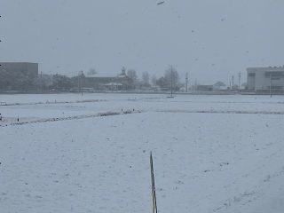 一瞬朝日がのぞいた会社からの雪景色ですが、雪の白とのコントラストがきれいですねーー。