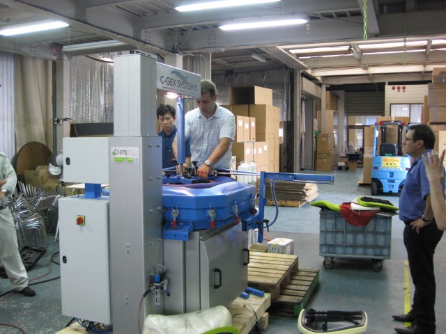 朝から機械の搬入、設置、テストで午後からのデモンストレーション。
