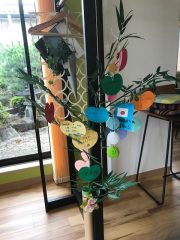七夕の短冊は、パキラから本来あるべき笹の葉へと引っ越し致しました。