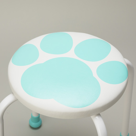 座面に犬の肉球がプリントされていて、その色にあわせたキャップをつけます。