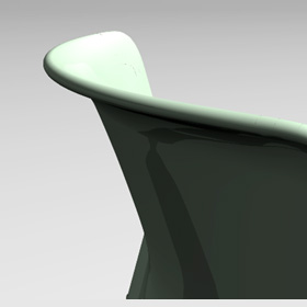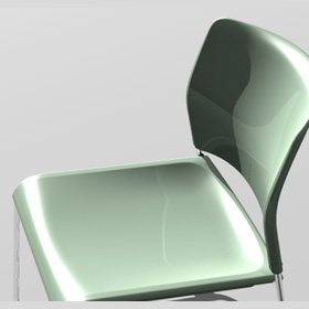 背と座には隙間を設けることにより埃が溜まり難く、着席時上着の裾がしわになり難くくなります。またイスの移動の際、持ちやすいように背の下部は曲線形状としています。