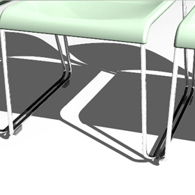 イスを配置する際、脚先に備え付けられた連結部品をはめ込むことによりイスを整然と並べることができます。