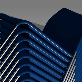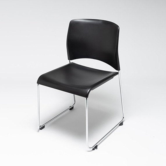 座裏に一体型のスタック受けを設け、スタッキングした時にイス同士がキズつかないようにし、また安定した積載ができます。平床では6脚の積載が可能です。