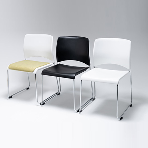 三次曲面の構成と適正な角度で設定された背座は集会場などのリラックスした姿勢から机とセットした時の筆記姿勢まで、幅広い用途に適応した座り心地が得られます。座にはパット付きの仕様も準備しております。