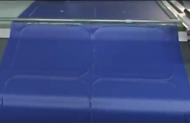 型紙から裁断データを作成し、自動裁断機の上部にあるプロジェクターからカットデータを投影し、自動裁断を行います。
