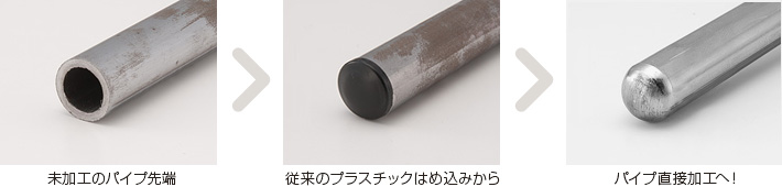 当社では従来のプラスチックはめ込み方式から、パイプ直接加工への移行により、資材を削減し環境に優しいパイプイスの製造へと力を注いでいます。
